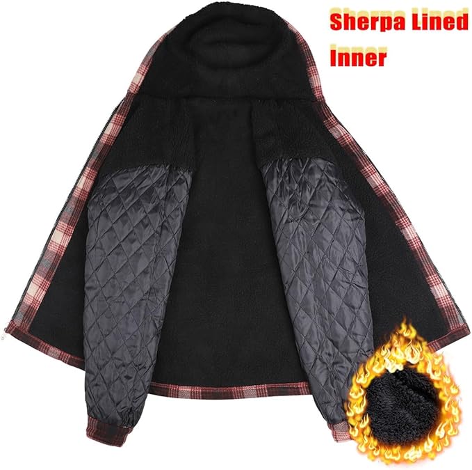 - COMFORT AND WARM: Winter jacket made to keep you warm and cozy in colder weather, extra soft material and sherpa lined with zipper closure for a easy movement and warm, it also has nice looking Plaid pattern