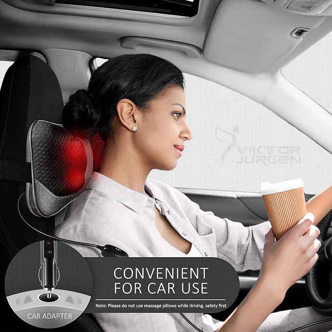 - ERGONOMIC BACK MASSAGER: The VIKTOR JURGEN back massager is equipped with a multifunctional detachable cover. When you want a deep massage, you can take off the cover. If you want a gentle acupressure massage, you can install the cover and you will get a gentle warm massage. The neck massager is equipped with a car adapter, and you can also enjoy a comfortable massage in the car