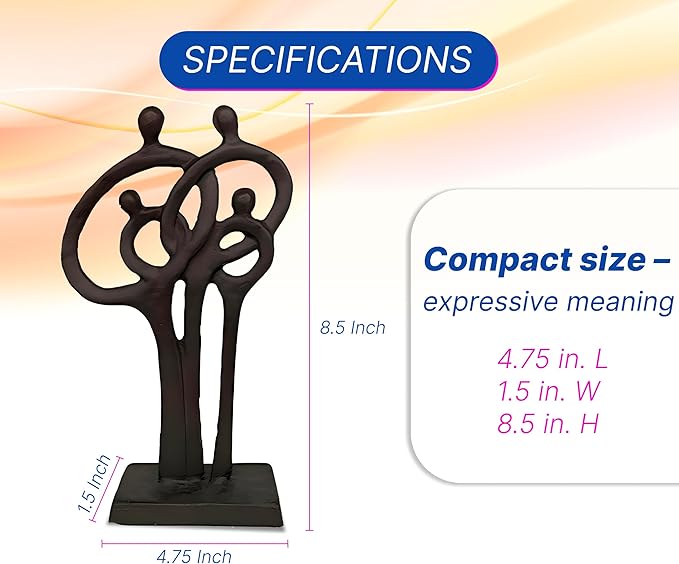 - Handcrafted metal art body sculpture representing a family of four with dimension 4.75 in. L x 1.5 in. W x 8.5 in. H (1.1 lbs.). Esculturas decorativas modernas o figuras decorativas modernas assim como esculturas modernas para sala.
