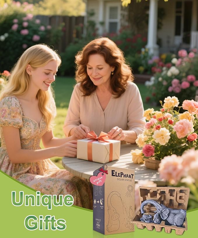 - Warm 3-color water-flow LED lights cast a 1-square-meter cozy glow, mimicking elephant trunks spraying water; mother-child design symbolizes love to turn your garden into a heartwarming outdoor space; ideal for gifting on Mother’s Day or enhancing family gatherings.