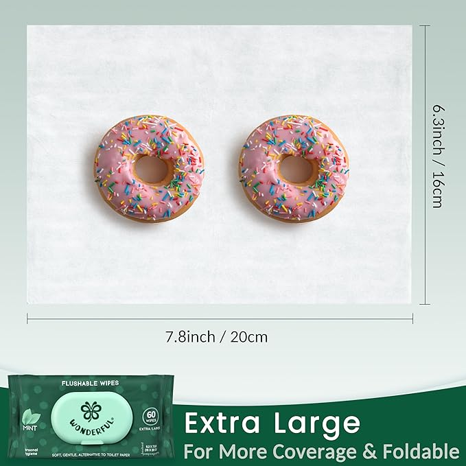 - 🌿MINT & PREMIUM QUALITY: Wonderful Flushable Wipes are great alternative or supplement to toilet paper. Our butt flushable wipes are made with superb quality of plant-based fibers, providing a refreshing, clean feel and your butt can stay cool. Designed for adults, kids, feminine, babies, dudes use, pets safe.
