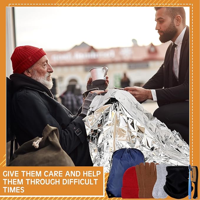 - Practical and warm: our homeless supplies include hat, neck warmer, gloves, sock, blankets to keep out the cold; There are also practical combs and toothbrushes for homeless washing, warming those who may be struggling without adequate shelter
