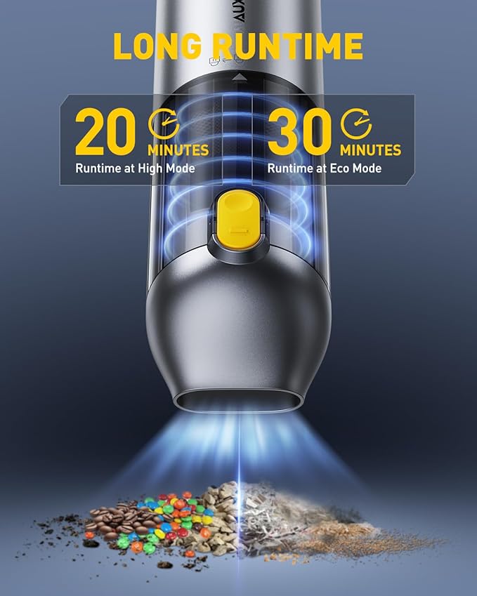 - 【14000PA HIGH POWER SUCTION HANDHELD VACUUM】The upgraded high-speed brushless motor delivers 14000Pa of powerful suction to quickly and easily pick up stubborn sand, dust, and debris. 2 suction modes of 8500PA and 14000PA are available to meet your different cleaning needs. (If the vacuum cleaner is in a low battery state, you may feel weakened suction power when using the high speed mode, and you need to charge it in time when using the high speed mode continuously.)