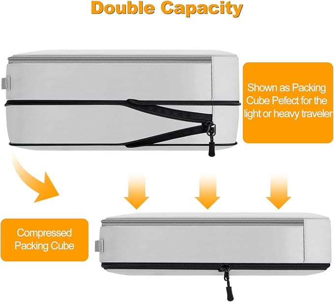 - Advanced Compression Technology – Saves 50% Space:Designed with double-layer zippers, these packing cubes compress clothes efficiently, reducing volume by up to 50%. Easily pack bulky items like jackets, sweaters, or workout gear while keeping them neatly organized. Perfect for minimalist travelers, backpackers, and business professionals who need extra space!