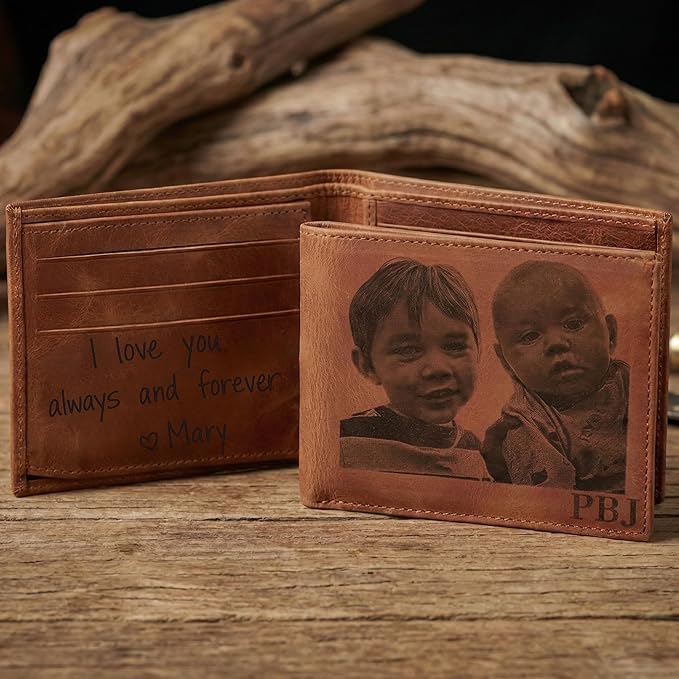 - 【Personalized Photo Wallet for Him】Surprise him with a personalized photo wallet for men designed just for your relationship. Add your favorite picture, names, initials, dates, or a short message to create a customized wallet he’ll carry every day. A meaningful way to share a memory with your husband or boyfriend