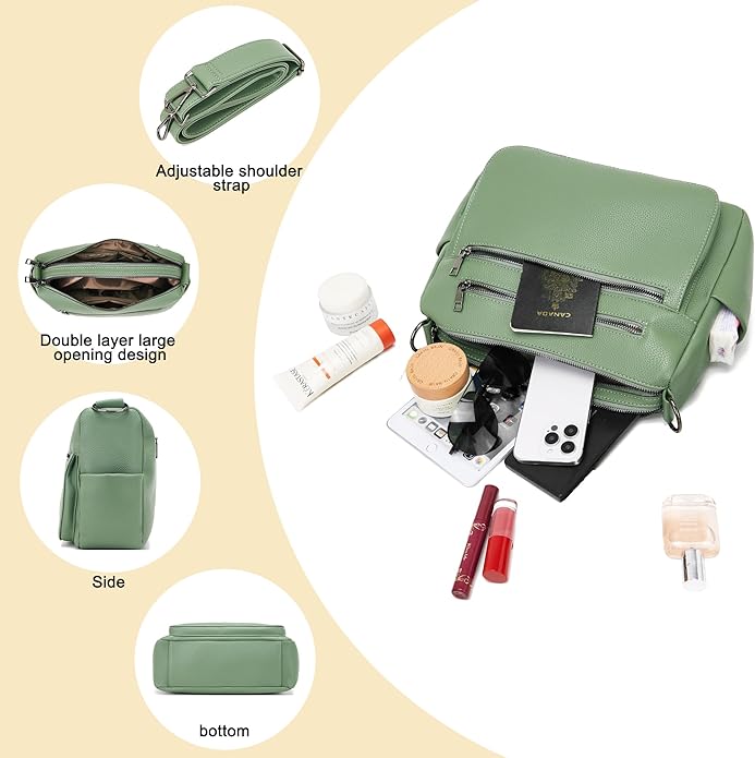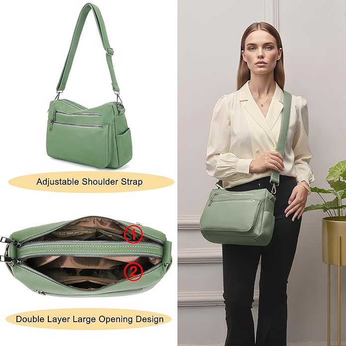 - Multiple Pockets High-Quality:5 compartments, 2 side pockets,make your daily items more organized and tidy, easy to access.The handbag is made of high-quality soft solid color synthetic leather, with a comfortable touch and easy to wipe. It is equipped with a classic zipper, smooth and easy to open and close, and sturdy and durable.