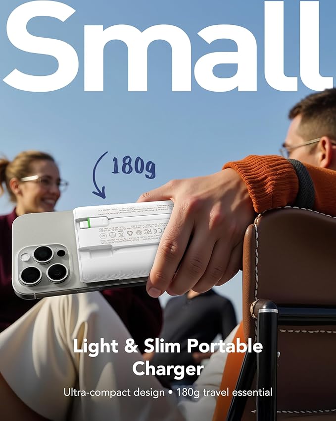 - 【20% lighter, Still 10000mAh】 Weighing only 0.4 lb, it's significantly lighter than comparable models while delivering a full 10000mAh capacity. Provides up to 1.7 charges for iPhone 16 and over 1.5 charges for a Galaxy S25—the ideal balance of portable size and reliable power.
