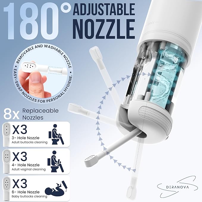 - High-Pressure Travel Bidet Portable: Experience the convenience of a powerful, clean wherever you go, a cleaner replacement for toilet paper. Deranova portable travel bidet delivers strong water pressure for thorough hygiene, postpartum recovery, camping, and more, making it ideal for travel, office, or emergencies.