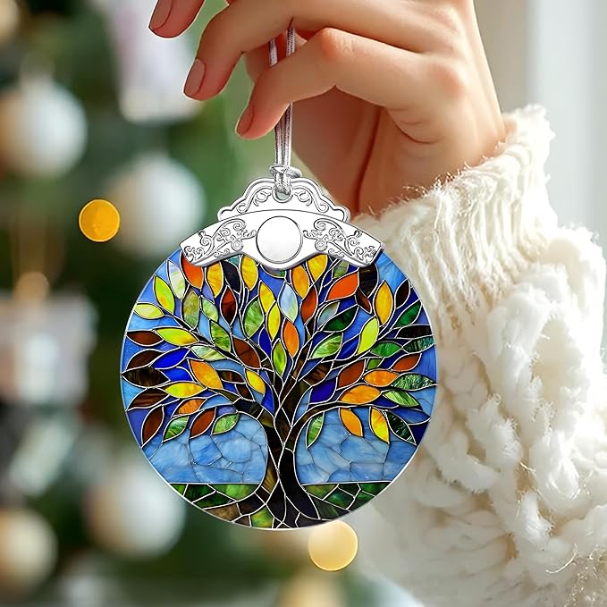 Tree of Life Stained Glass Ornament, Christmas Ornaments – Christmas Tree Decorations, Holiday Decor, Stocking Stuffer, Gift Idea, Tree of Life Gift, Gifts for Friend and Family