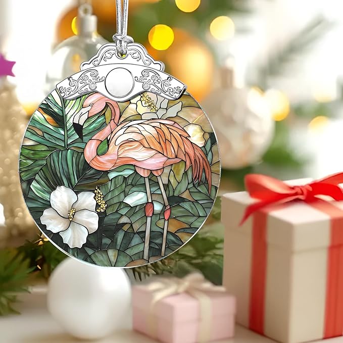 Flamingo Stained Glass Ornament, Christmas Ornaments – Christmas Tree Decorations, Holiday Decor, Stocking Stuffer, Gift Idea, Gifts for Flamingo Lover, Friend, and Family
