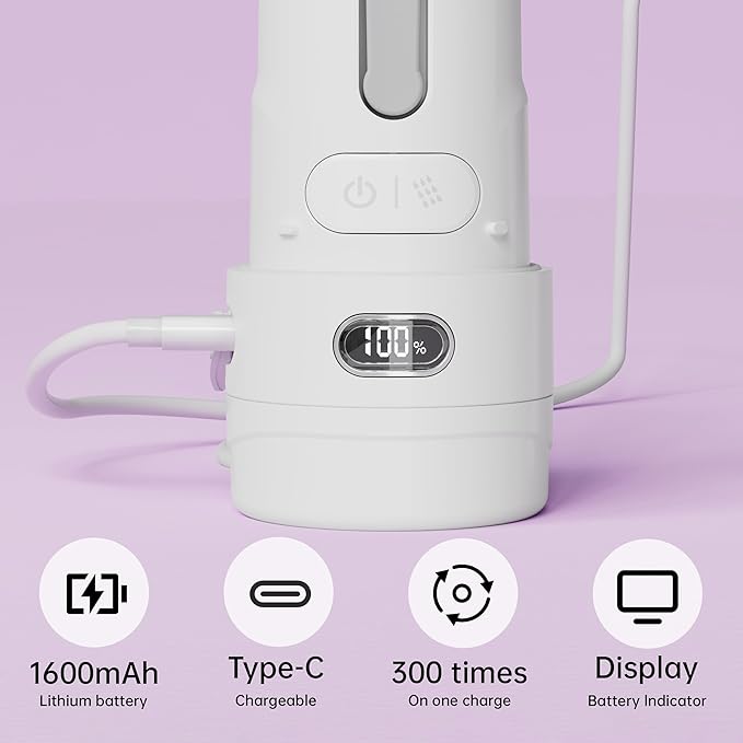 - Long-Lasting USB-C Rechargeable Battery & Initial Use Tip: Powered by a built-in 1600mAh battery, our rechargeable electric bidet supports an impressive up to 300 uses per charge. For optimal performance, we recommend fully charging the device before first use. The convenient USB-C port makes charging simple, ensuring your cordless bidet is always ready for home or travel.
