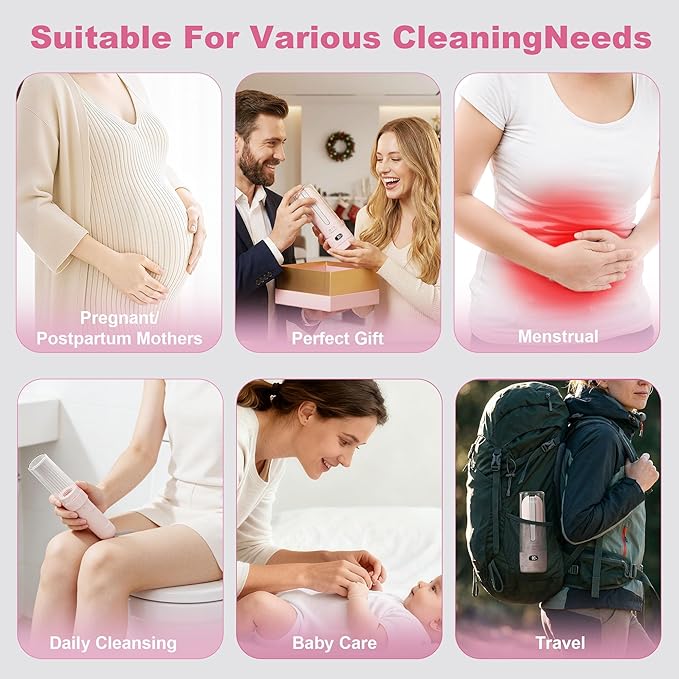 - 3 Customizable Modes for Gentle to Powerful Wash: Tailor your cleaning with 3 specialized water pressure settings: choose Soft Mode for sensitive skin or postpartum care, Strong Mode for deep cleansing, and Relieve Mode for a comfortable balance. This travel bidet is ideal for daily use, hemorrhoid care, or as a portable bidet for postpartum hygiene
